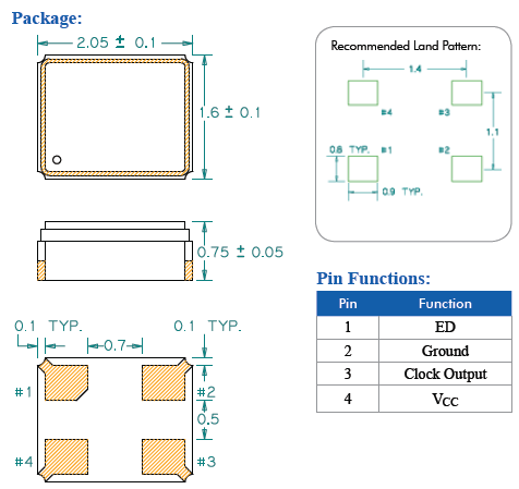 | 頻率溫度特征 | f_tem | ±30 × 10-6/-20°C ~ +70°C | 超出標準的規(guī)格請聯(lián)系我們. |