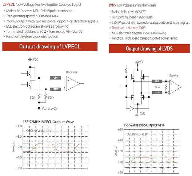 下面的圖表顯示LVPECL和LVDS輸出電路