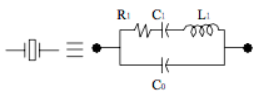 示出了石英晶體振蕩器的等效電路,以解釋控制晶體特性和性能的基本元素.它由運動電容C1,電感L1,串聯電阻R1??和分流電容C0組成.前三個參數被稱為石英晶體元件的“運動參數”.